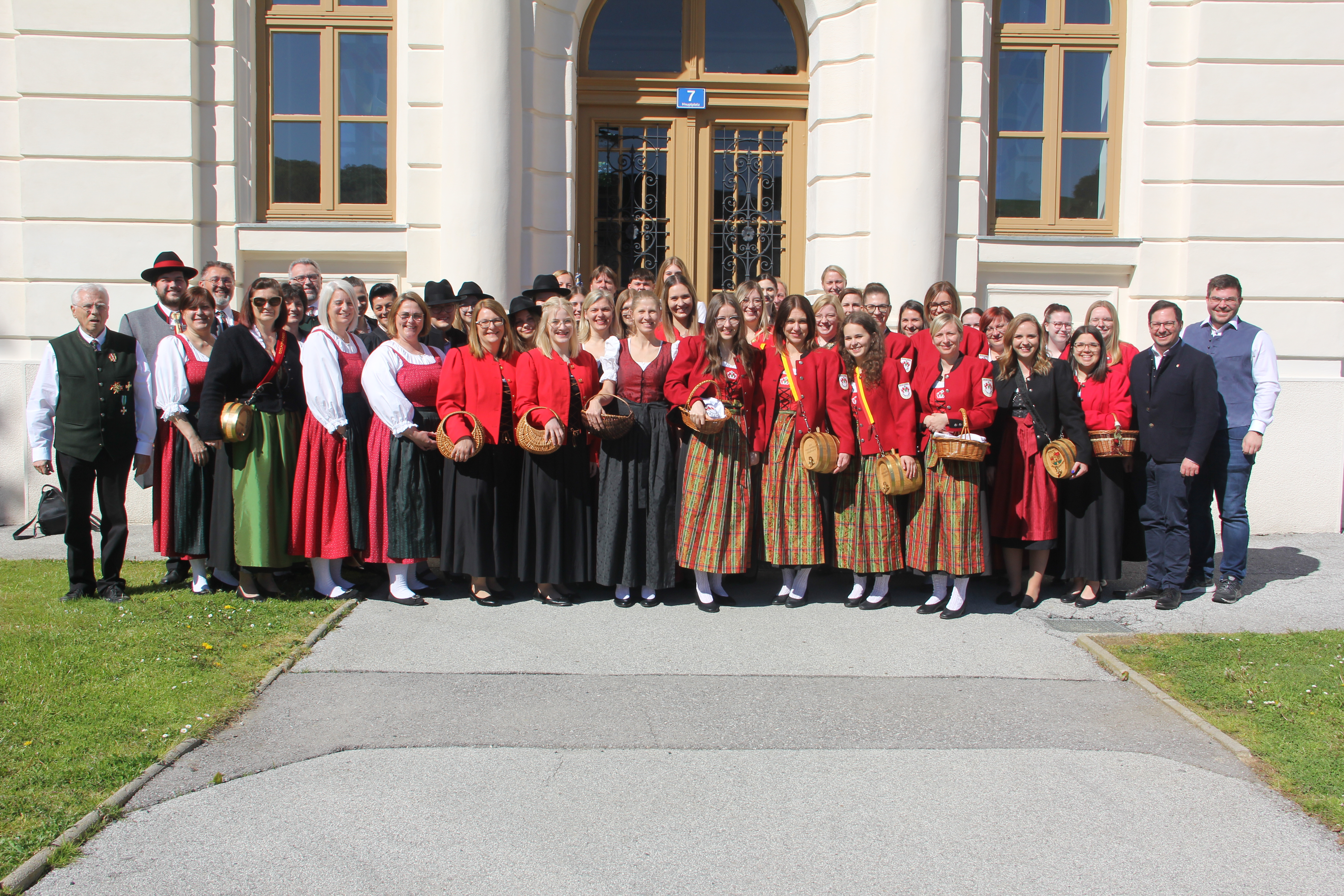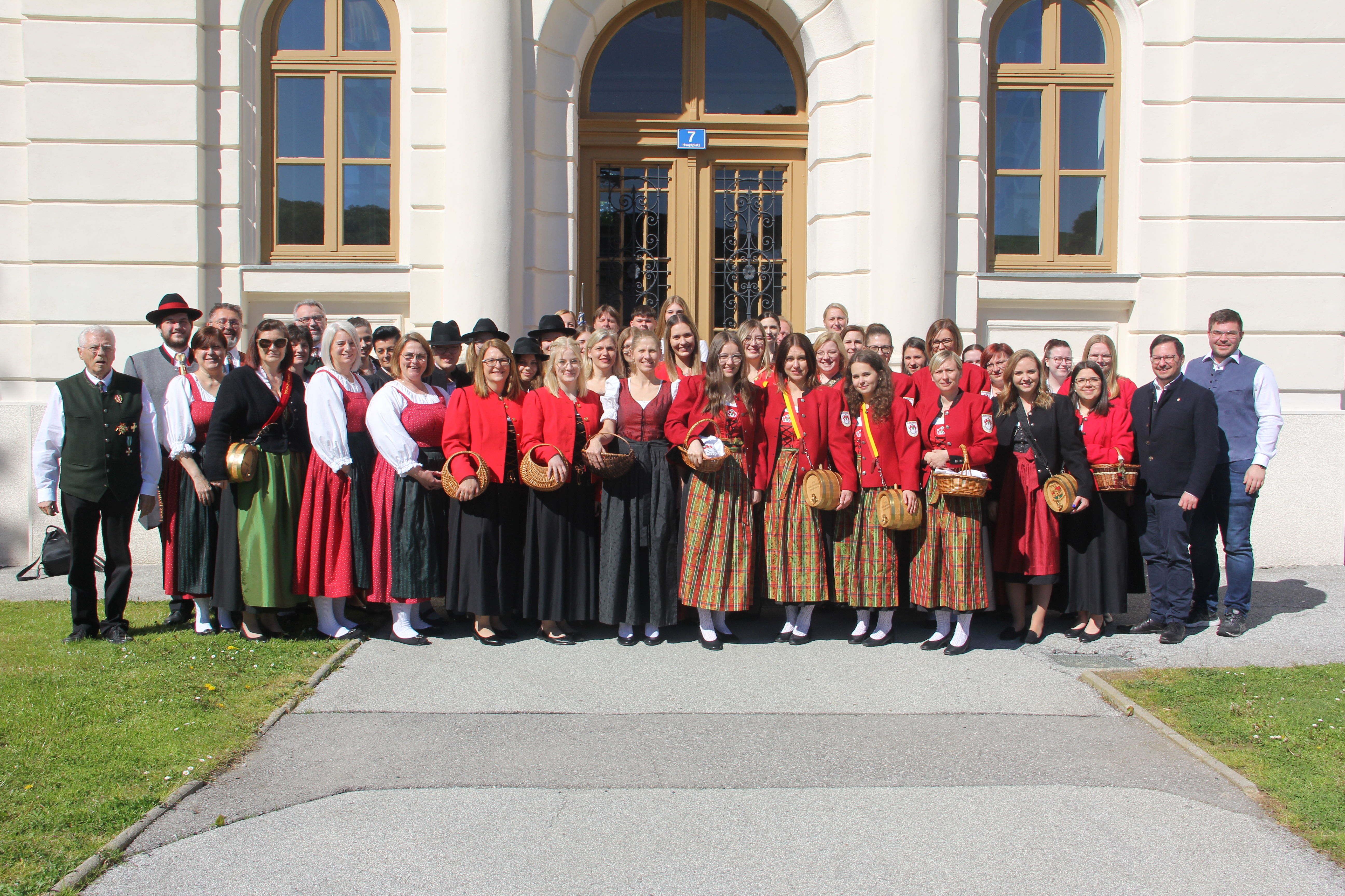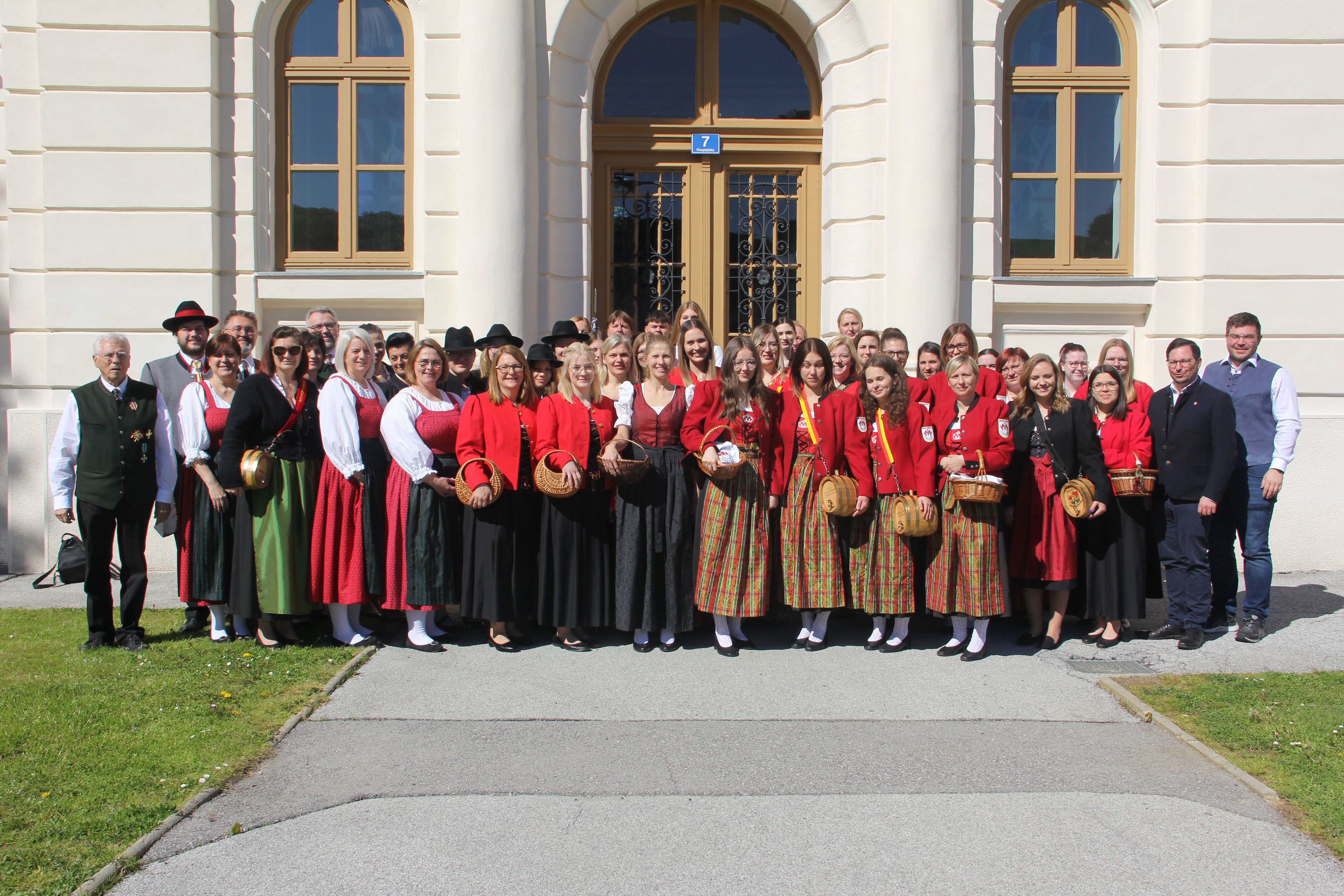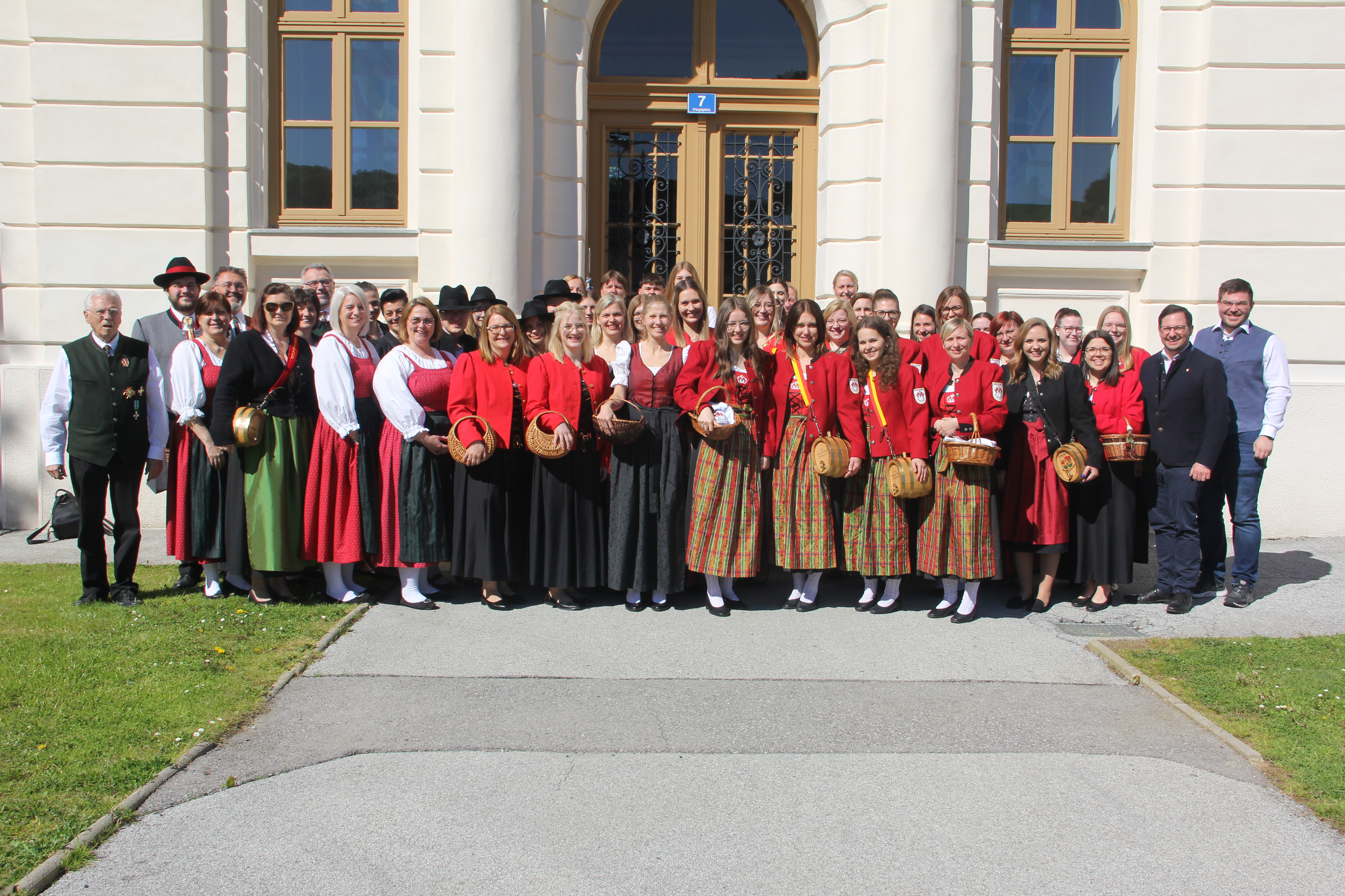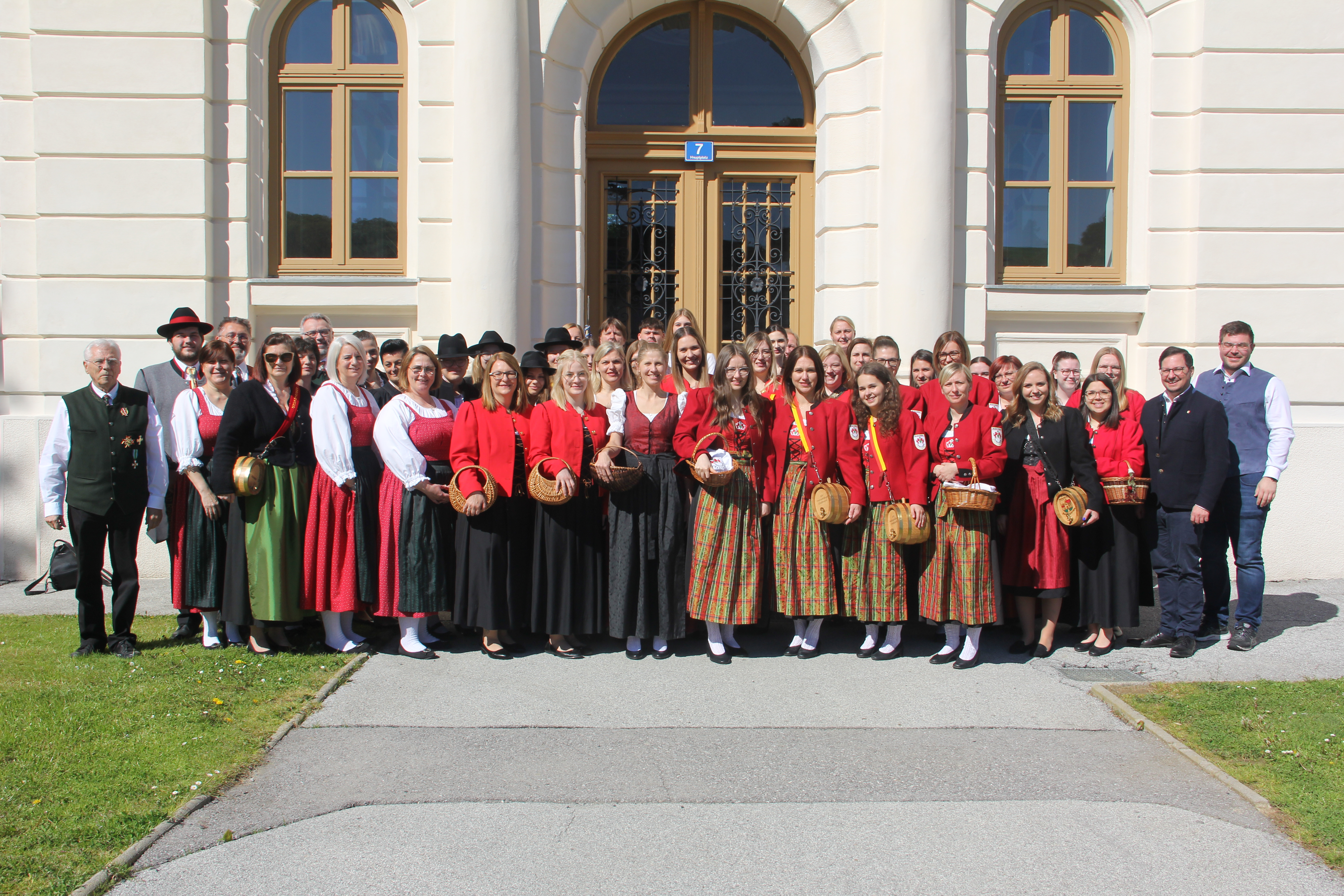 Der Tag begann mit einem gemütlichen Treffen bei Kaffee und Kuchen, gefolgt von einem Gruppenfoto, das die Teilnehmer*innen in traditioneller Tracht zeigte. Diese farbenfrohen Trachten verliehen dem Event eine besondere lokale Note.
