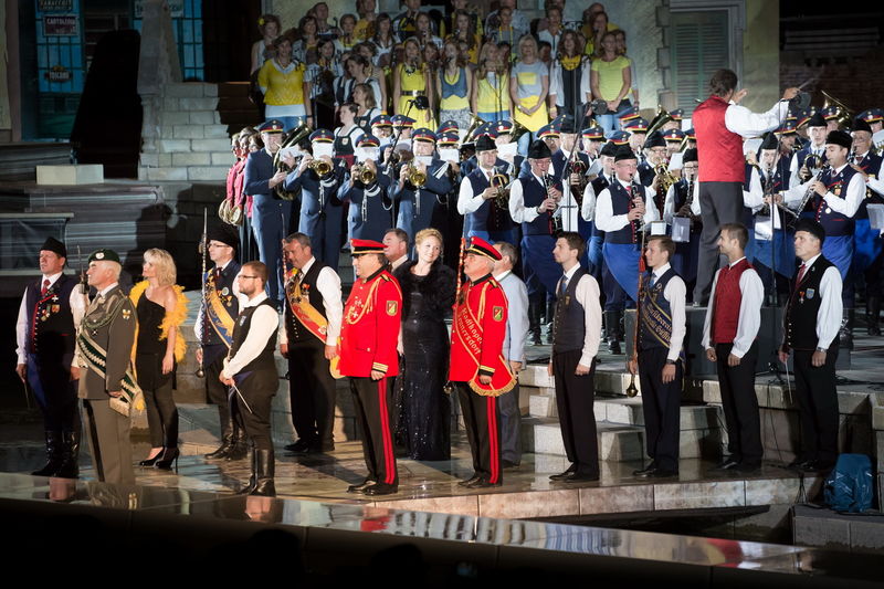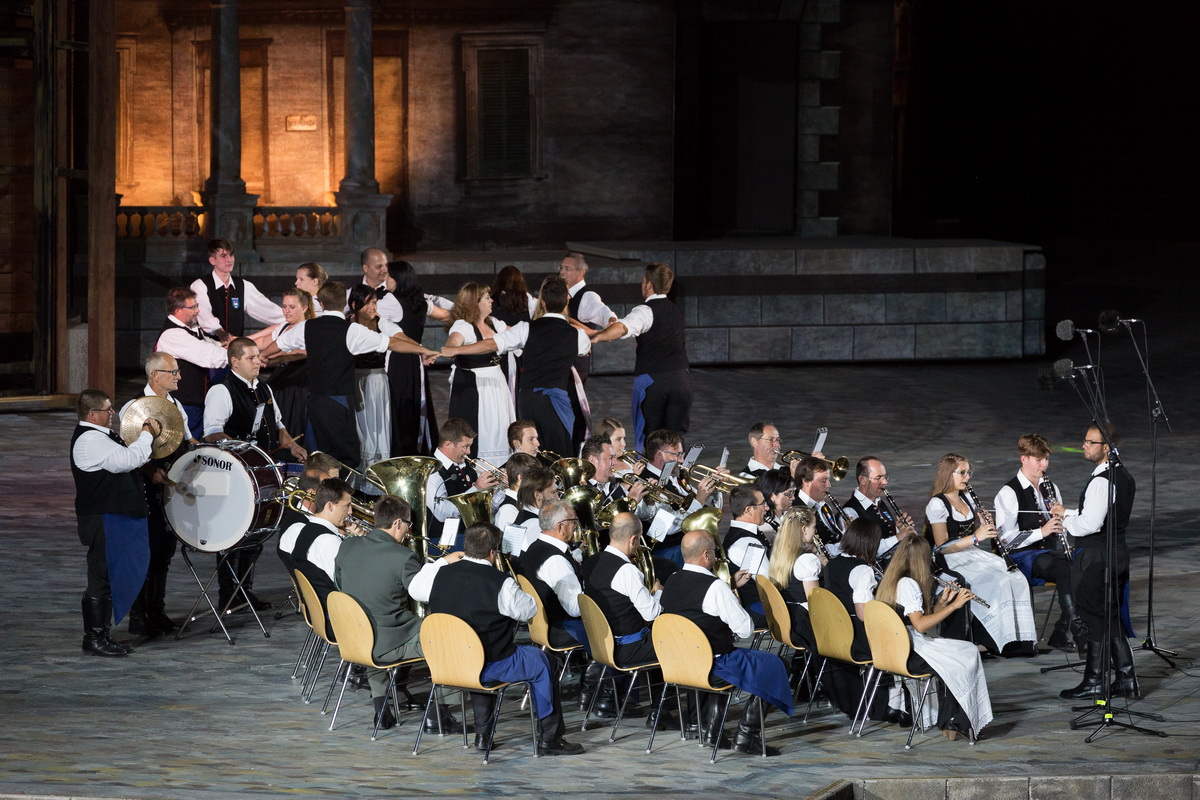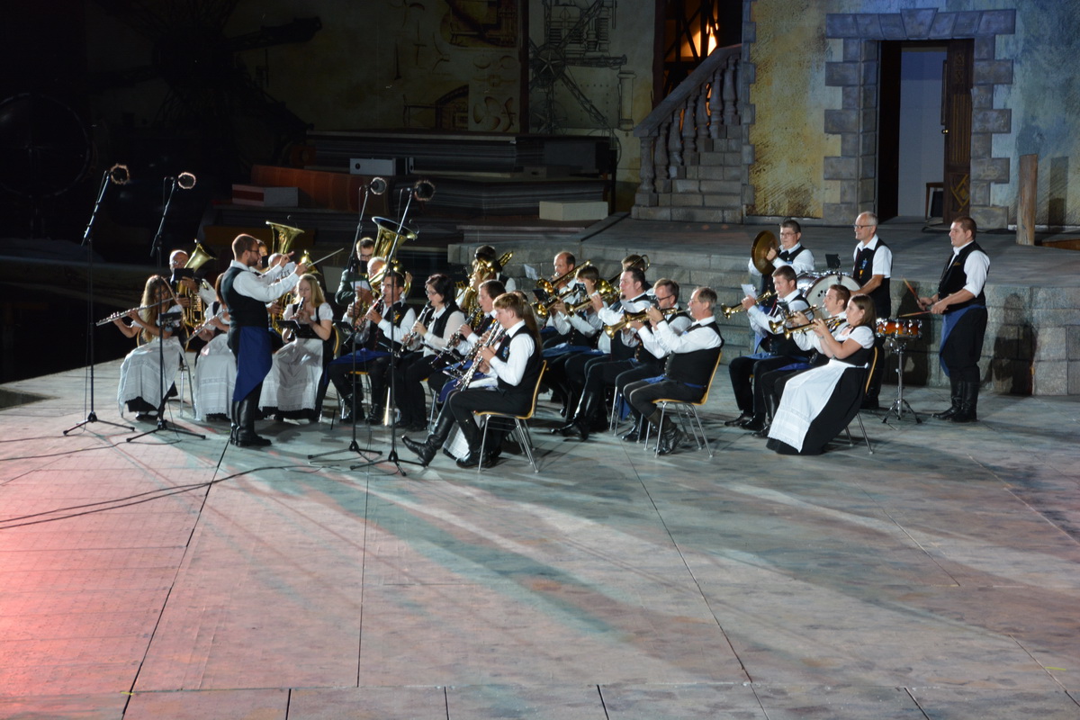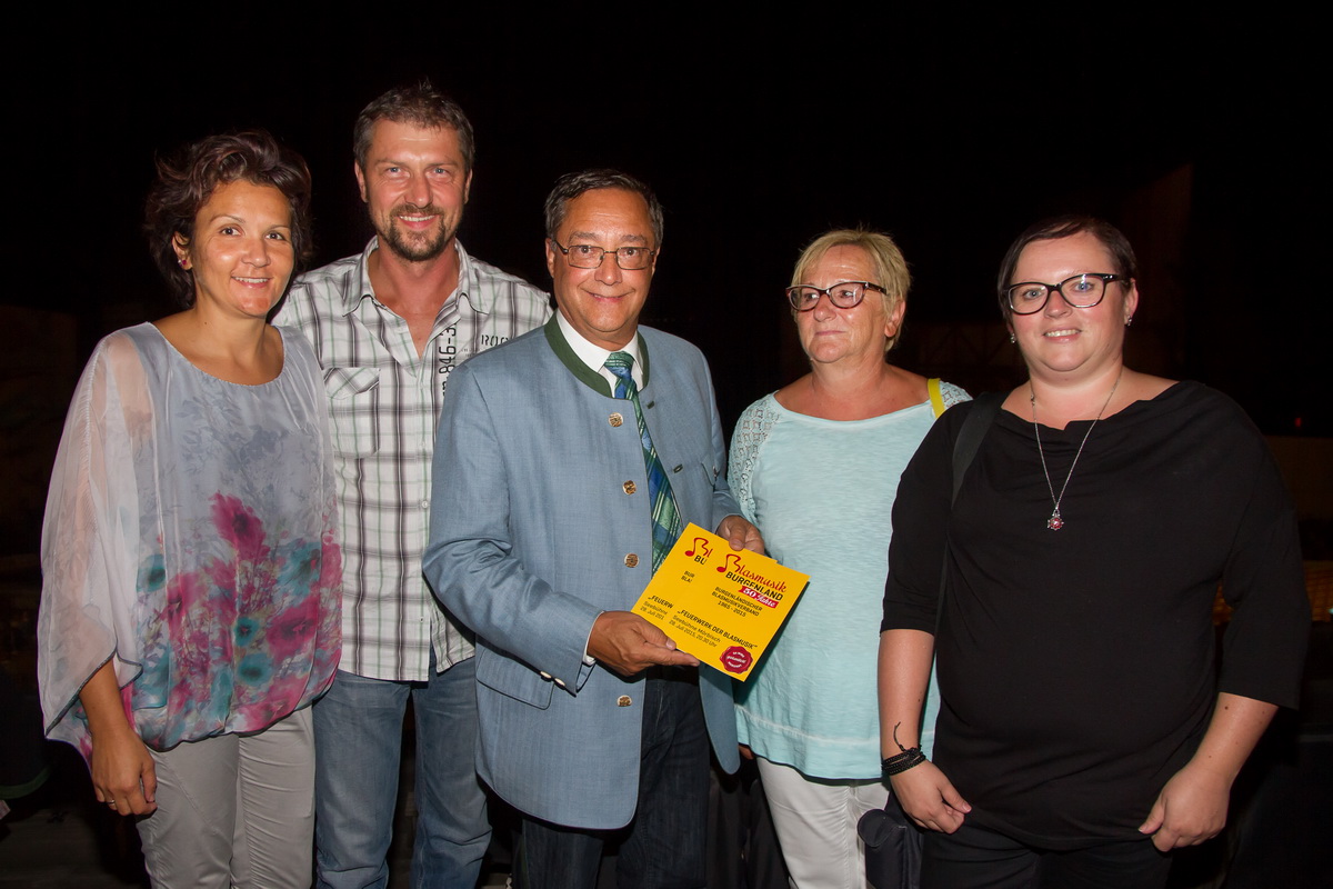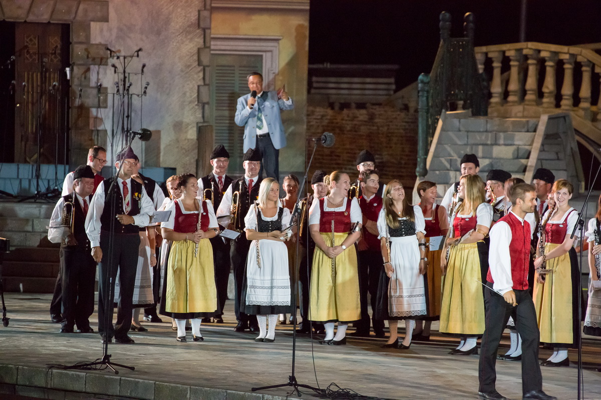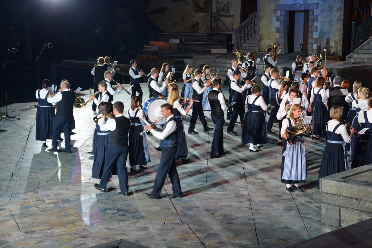 Neun burgenländische Musikkapellen, die Caledonian Pipes and Drums Burgenland, der Chor "Noise Experience", die Volkstanzformation "Rund um an See" und die Festspielintendantin Dagmar Schellenberger zeigten, was die Blasmusik kann.