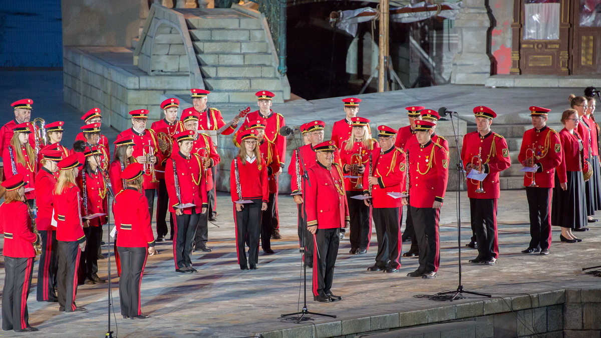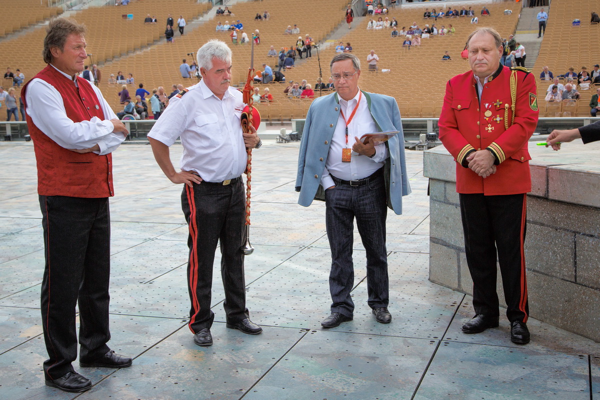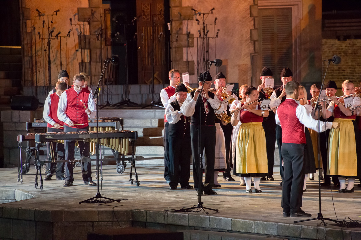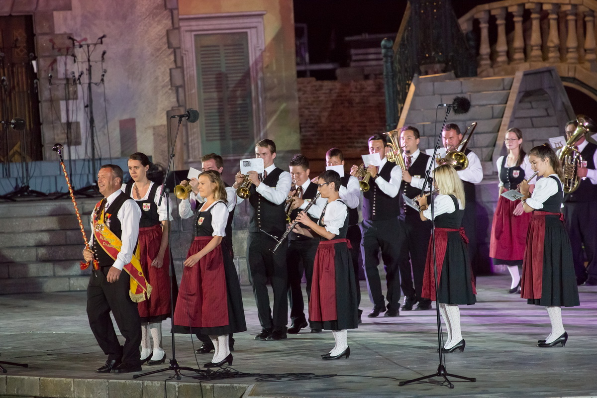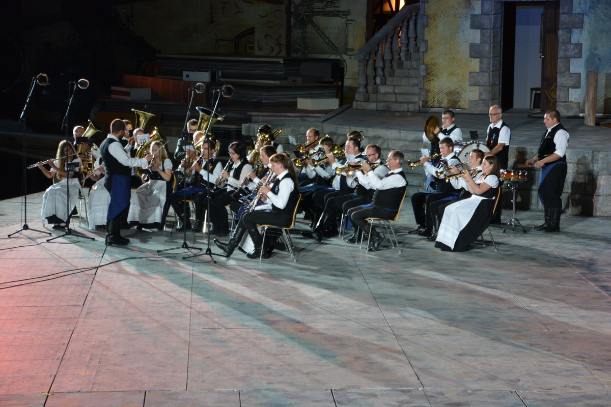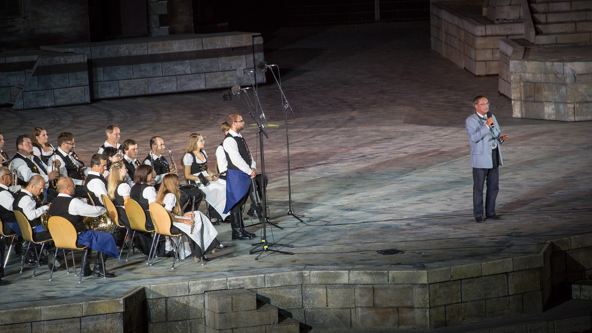Neun burgenländische Musikkapellen, die Caledonian Pipes and Drums Burgenland, der Chor "Noise Experience", die Volkstanzformation "Rund um an See" und die Festspielintendantin Dagmar Schellenberger zeigten, was die Blasmusik kann.