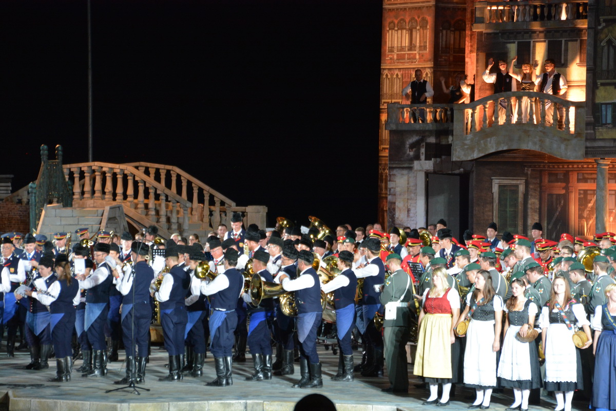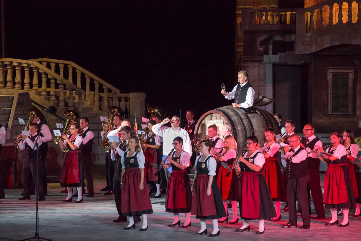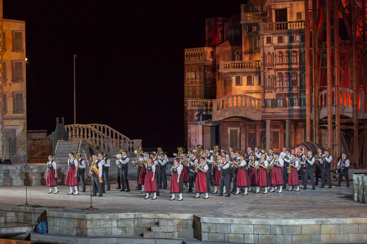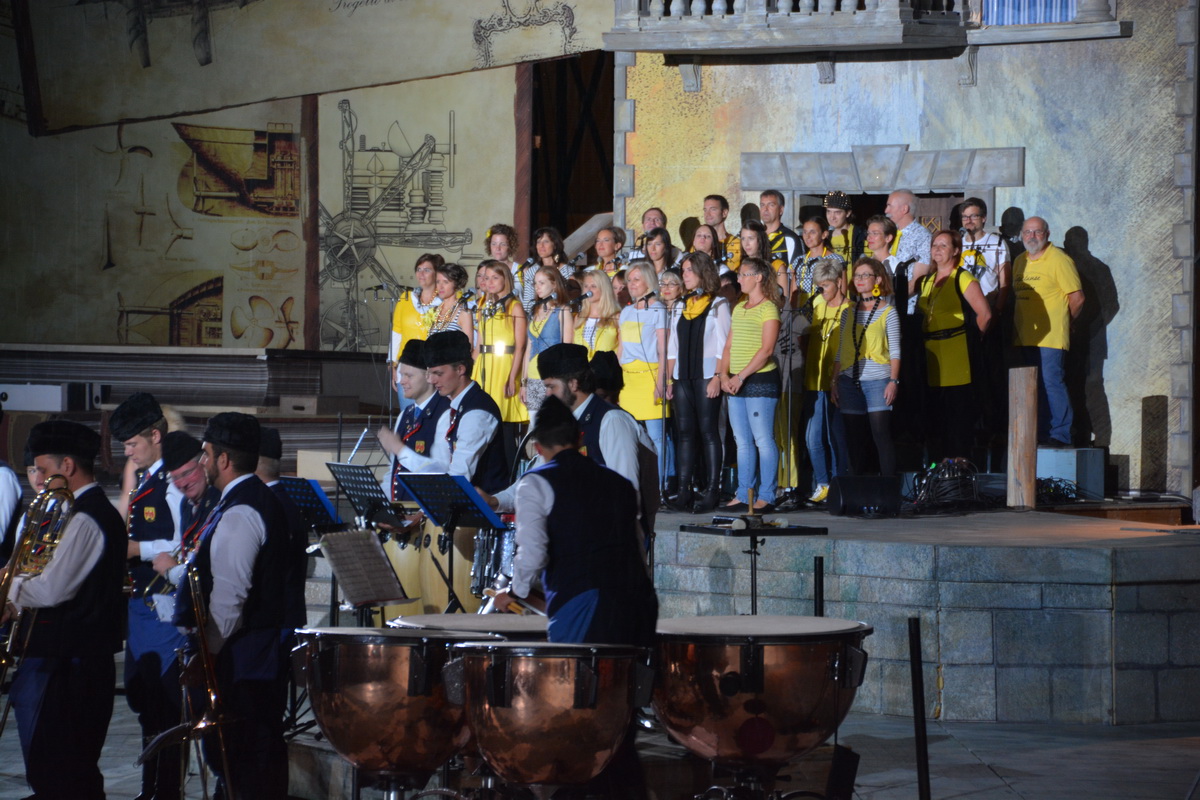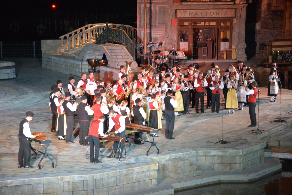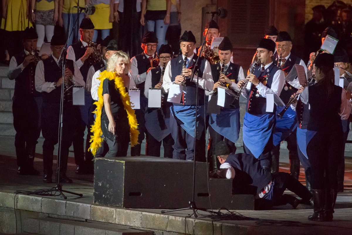 Neun burgenländische Musikkapellen, die Caledonian Pipes and Drums Burgenland, der Chor "Noise Experience", die Volkstanzformation "Rund um an See" und die Festspielintendantin Dagmar Schellenberger zeigten, was die Blasmusik kann.