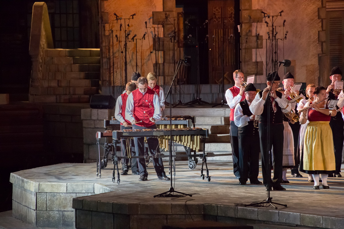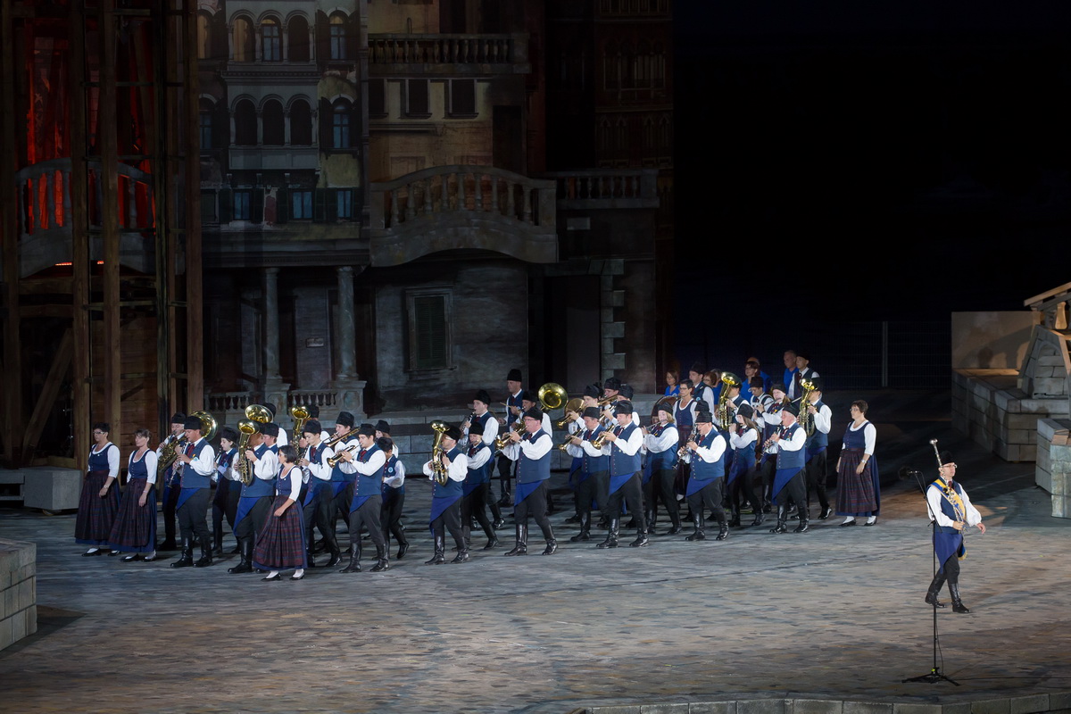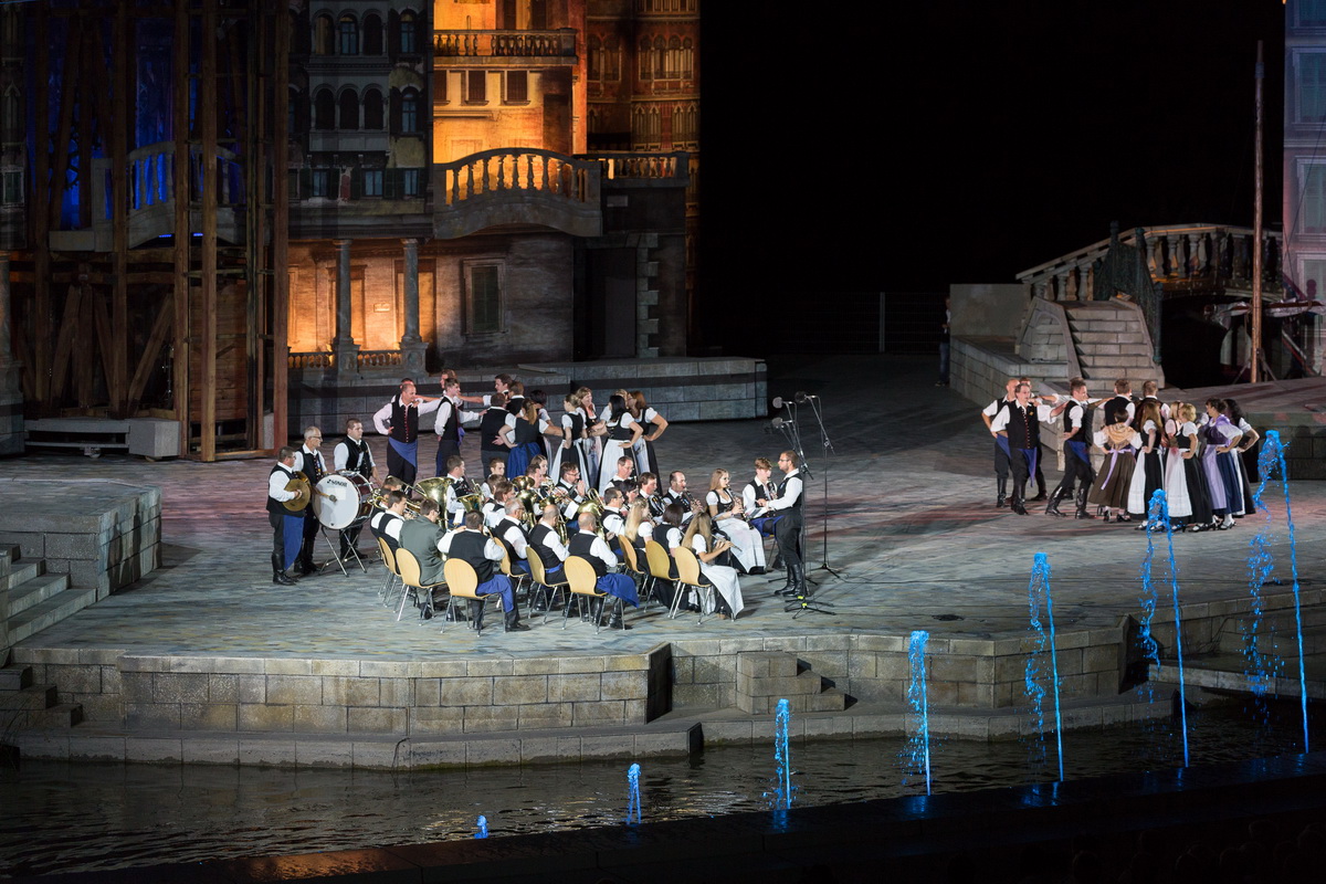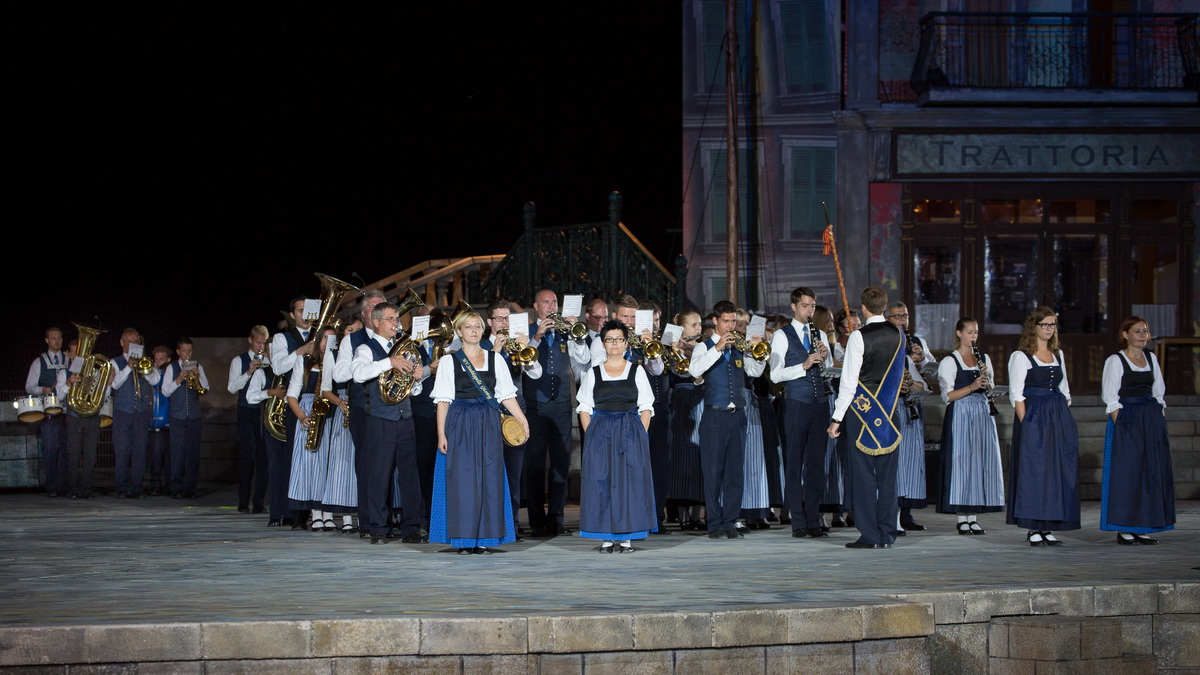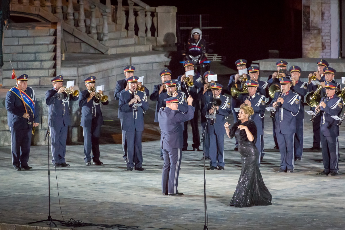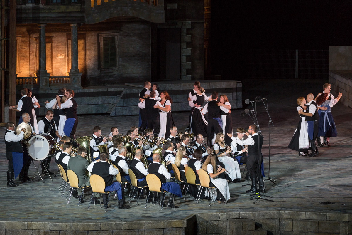 Neun burgenländische Musikkapellen, die Caledonian Pipes and Drums Burgenland, der Chor "Noise Experience", die Volkstanzformation "Rund um an See" und die Festspielintendantin Dagmar Schellenberger zeigten, was die Blasmusik kann.