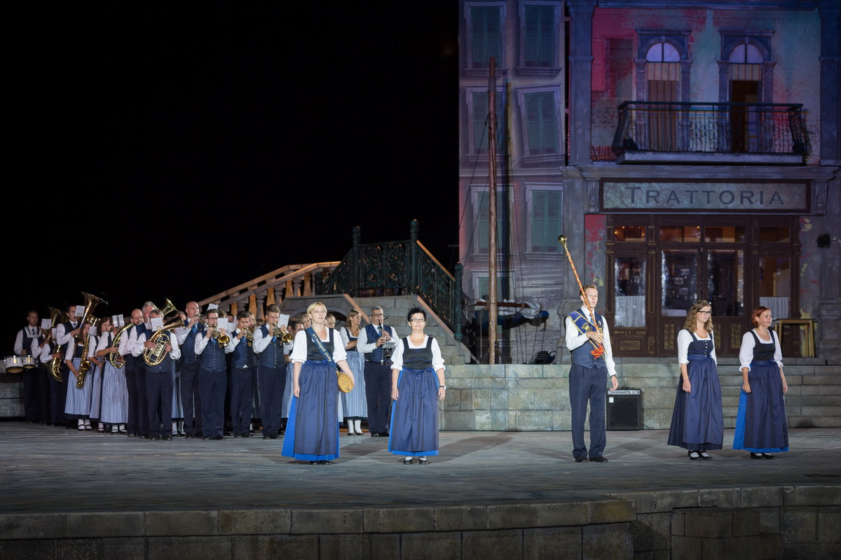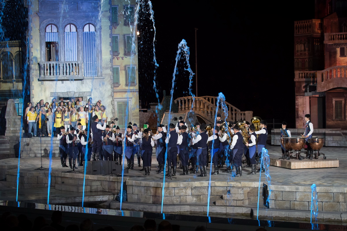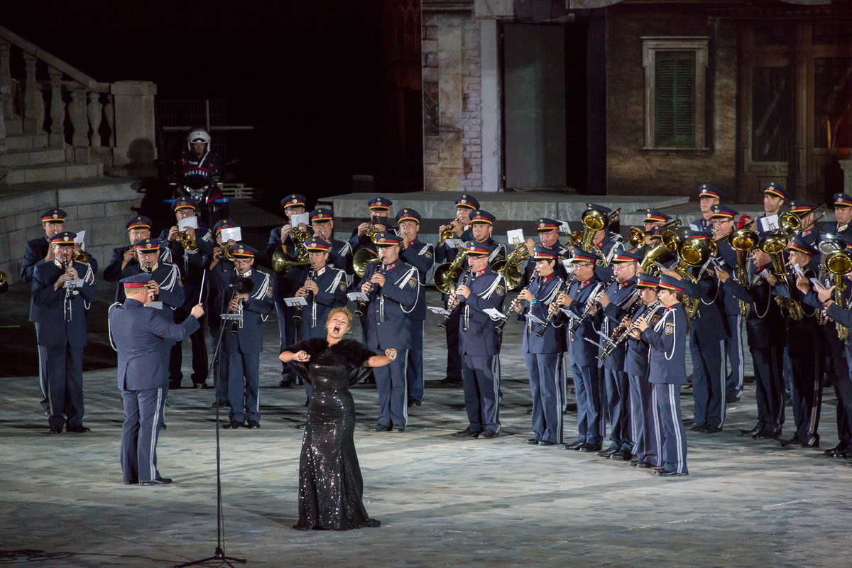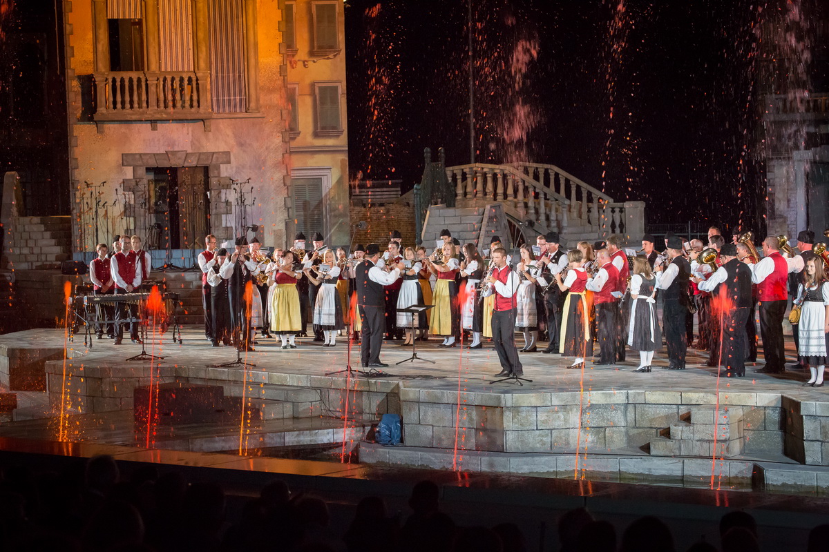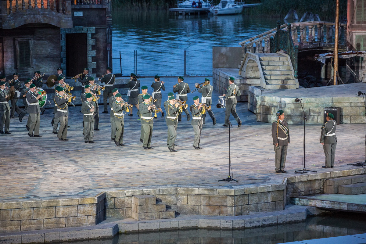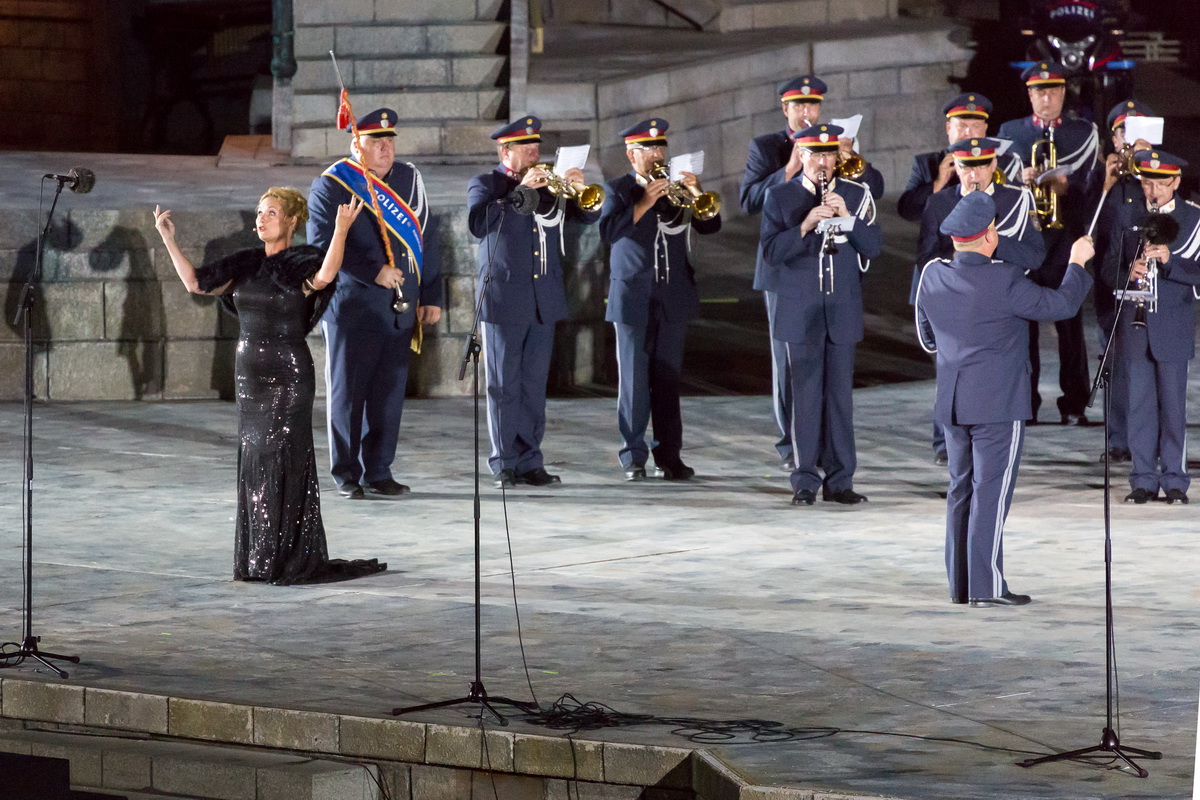 Neun burgenländische Musikkapellen, die Caledonian Pipes and Drums Burgenland, der Chor "Noise Experience", die Volkstanzformation "Rund um an See" und die Festspielintendantin Dagmar Schellenberger zeigten, was die Blasmusik kann.