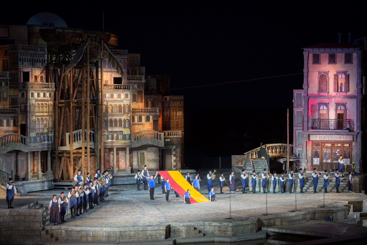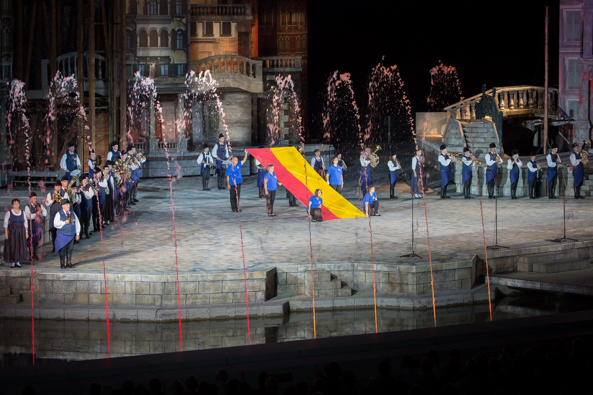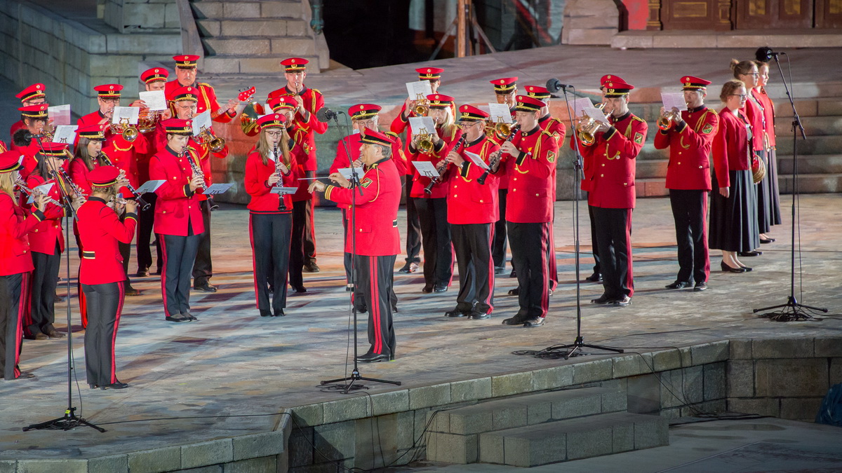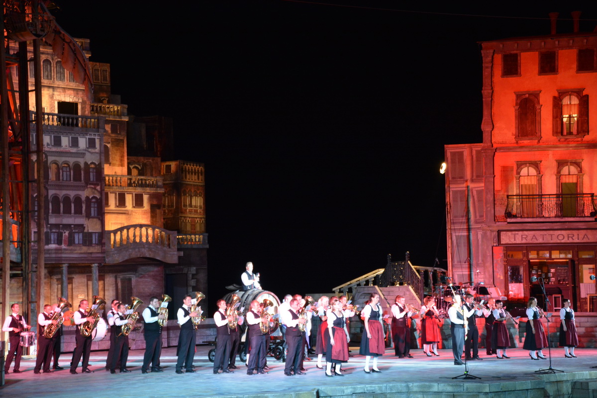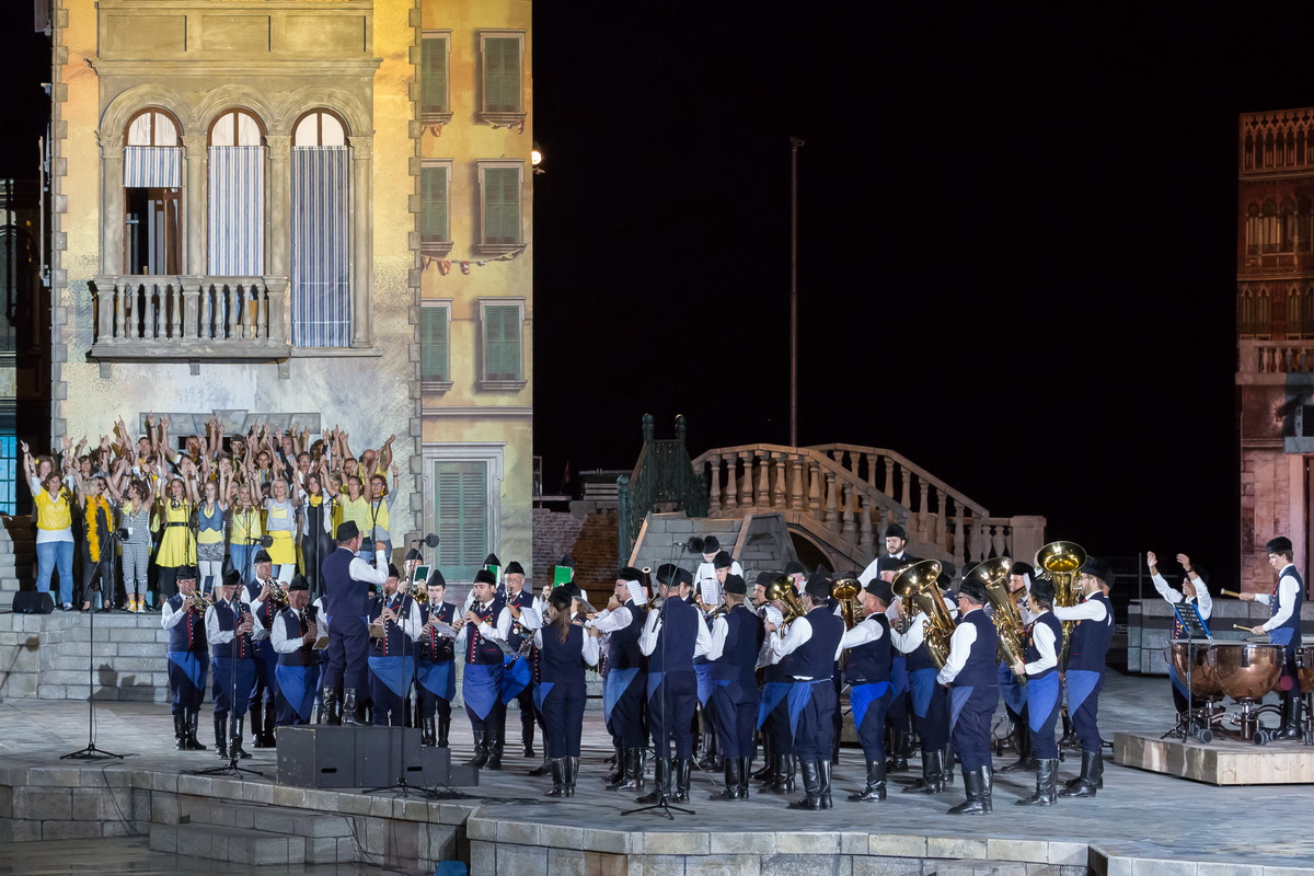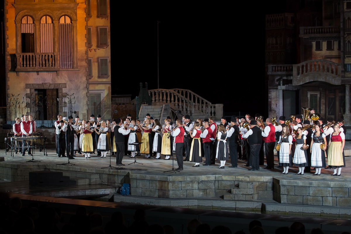 Neun burgenländische Musikkapellen, die Caledonian Pipes and Drums Burgenland, der Chor "Noise Experience", die Volkstanzformation "Rund um an See" und die Festspielintendantin Dagmar Schellenberger zeigten, was die Blasmusik kann.