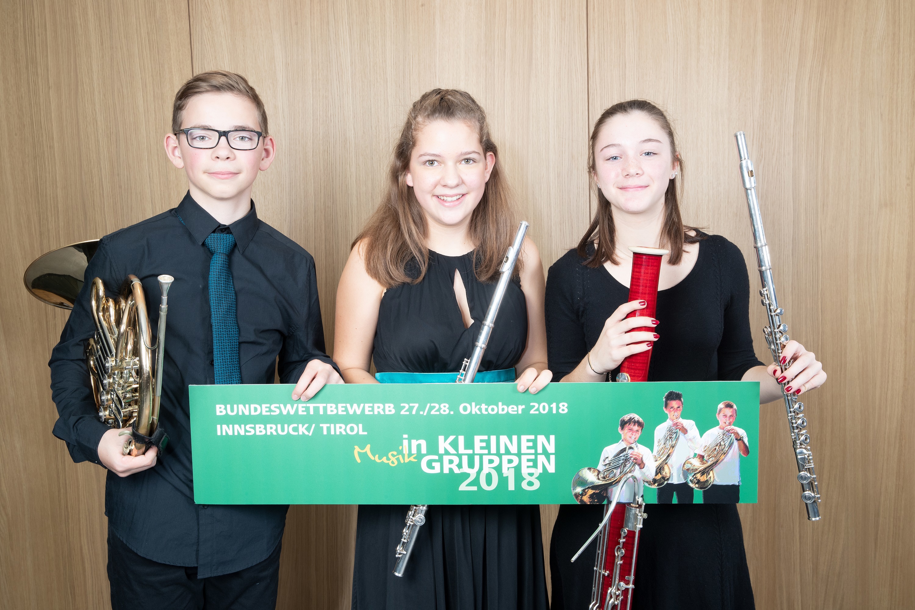 Das Trio stellte sich auch der Herausforderung „Spiel in kleinen Gruppen“, trat für den MV Wallern/Pamhagen an und erreichten beim Landeswettbewerb in Eisenstadt 97 Punkte. Somit qualifizierten sie sich für den Bundeswettbewerb, der Ende Oktober 2018 wiederum in Innsbruck stattfand. Ho2F konnte mit 92 Punkten die höchste Punkteanzahl erspielen, die je ein Ensemble aus dem Burgenland bei einem Bundeswettbewerb erreicht hat. Außerdem sicherten sie sich mit diesem Ergebnis den Gruppensieg in der Wertungsgruppe „gemischtes Ensemble“.